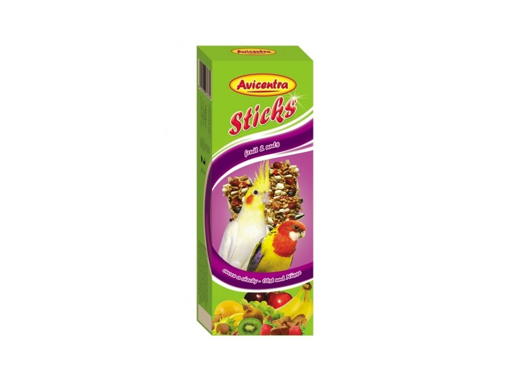 AVICENTRA tyčinky malý papoušek ovoce + ořechy 2 ks