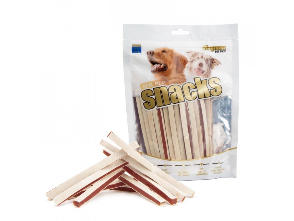 Měkká, přírodní masová pochoutka z kuřecího masa formovaná do měkkých proužků, které se snadno dělí na menší kousky.