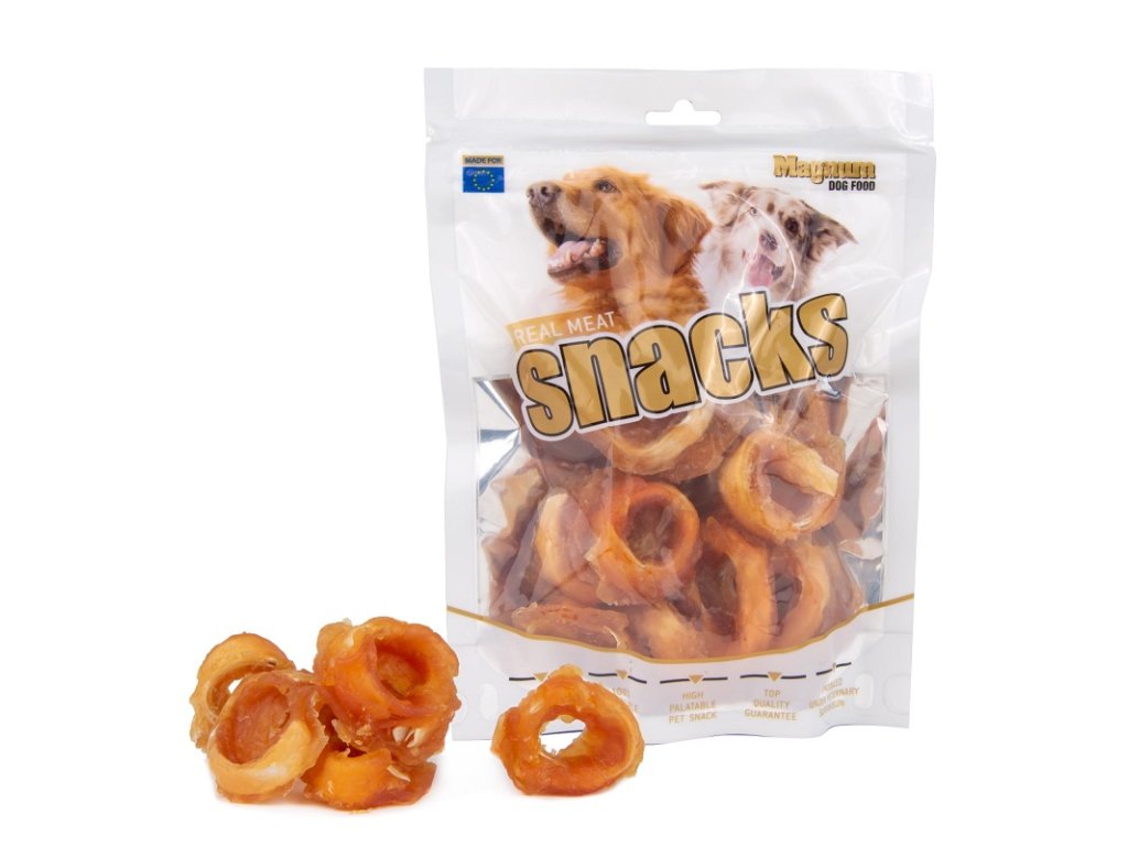 Měkká, přírodní masová pochoutka z kuřecího a rybího masa formovaná do středně velkých kroužků.