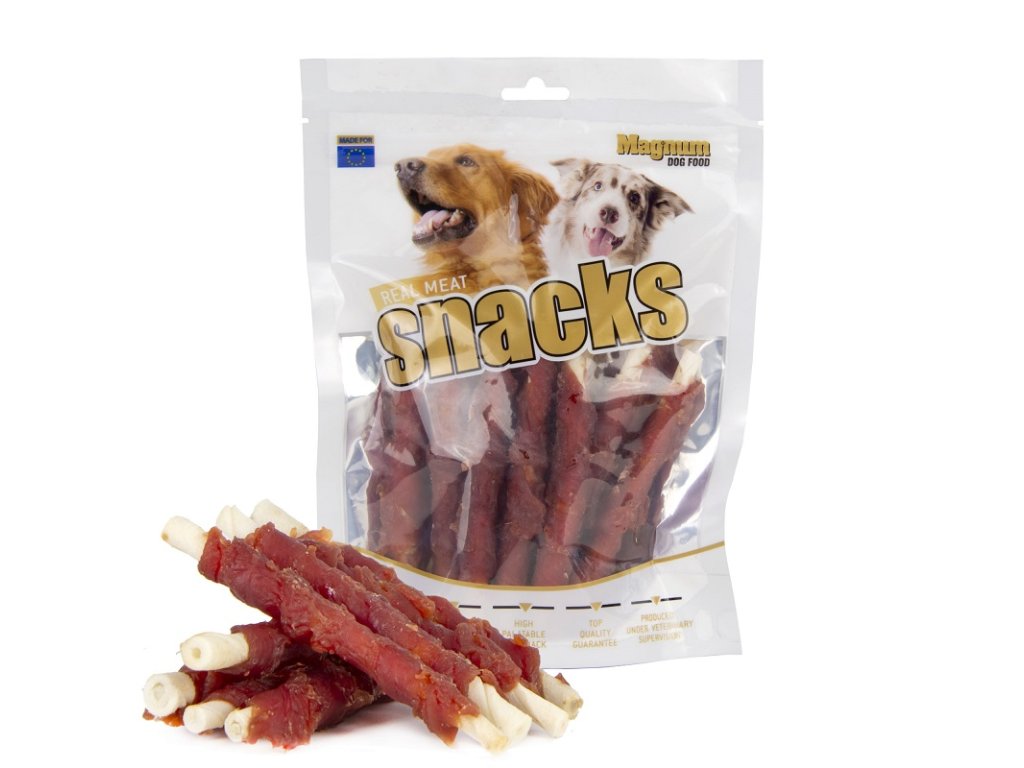 - Tyčka z hovězí kůže obtočená plátkem lahodného kachního masa.