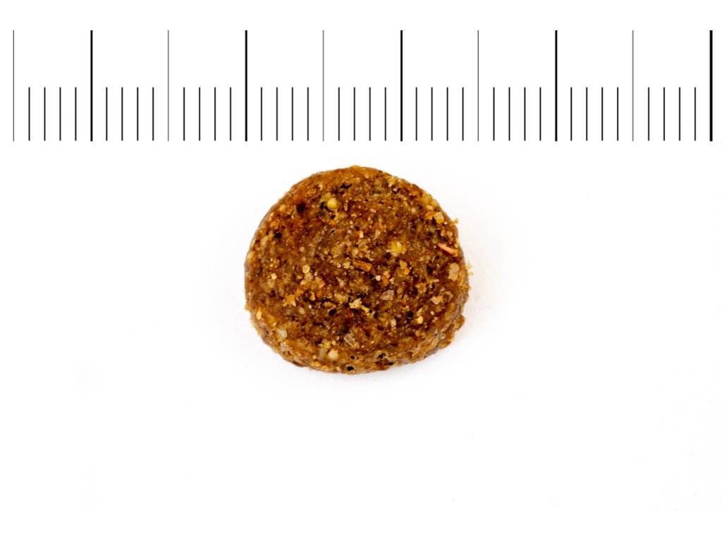 hrubý protein 27,0 %, obsah tuku 14,0 %, hrubá vláknina 3,0 %, vlhkost 10,0 %, hrubý popel 7,0 %, vápník 1,5 %, fosfor 1,1 %, Omega-3 0,25 %, Omega-6 1,75 %