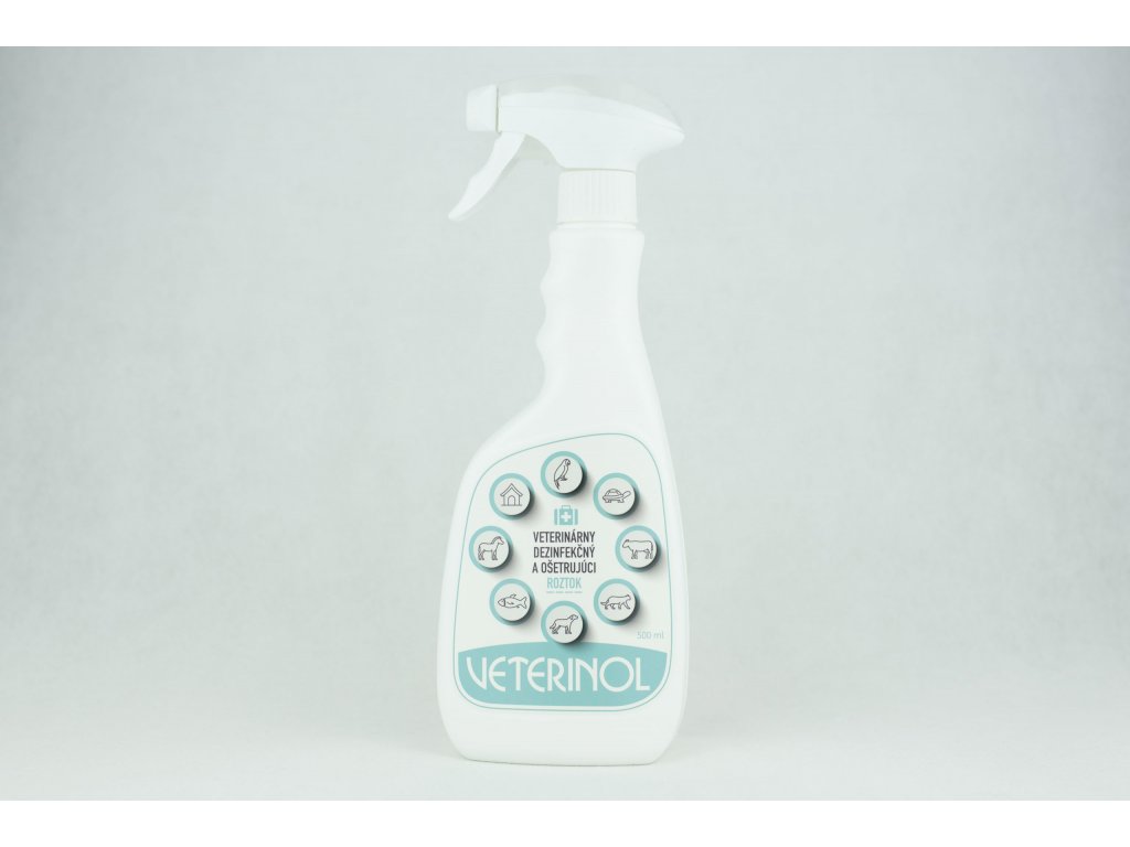 Veterinol desinfekce ve spreji 500 ml je bezpečná neštiplavá nepálivá desinfekce pro všechny druhy zvířat, včetně králíků, hlodavců, exotických zvířat, ptáků, obojživelníků, plazů a ryb.